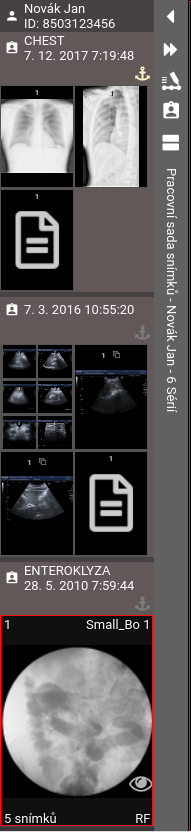 • Vylepšené zobrazení pracovní sady – pracovní sada v prohlížeči nyní nabízí dvě varianty zobrazení. Kromě stávající lze pro zobrazení vyšetření jednoho pacienta využit i zobrazení, které se snaží maximalizovat náhledy a přitom zobrazit co nejvíc dat bez nutnosti skrolování.